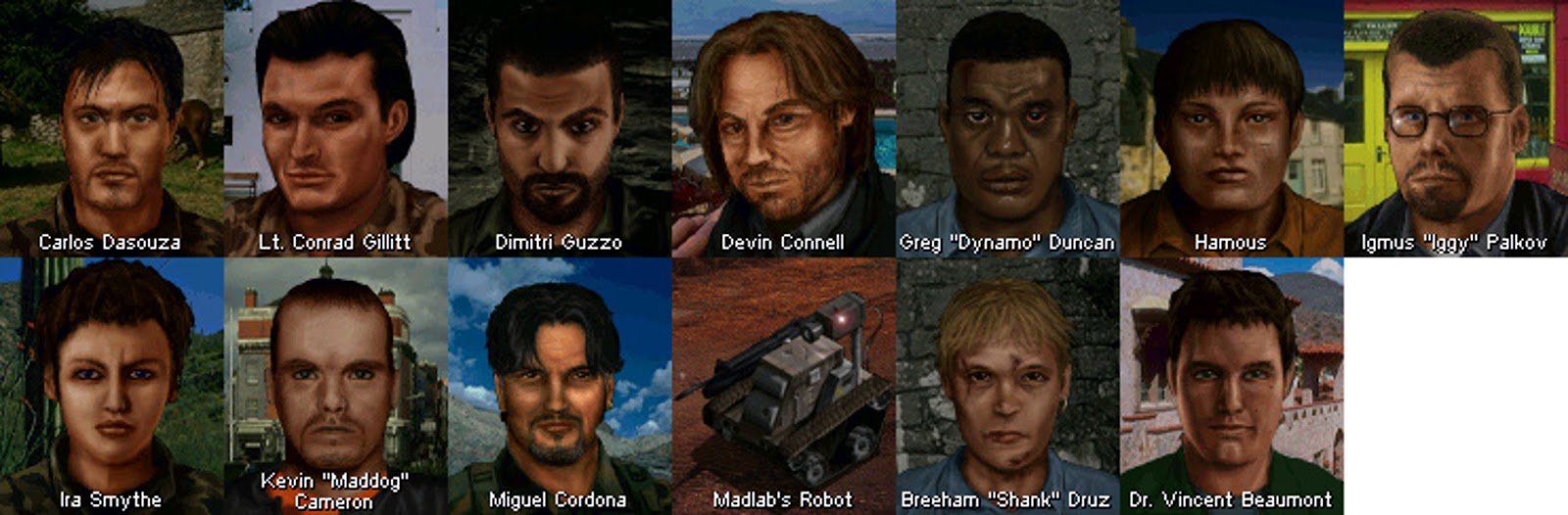 Total squad members on offer: AIM (40) + MERC (6) + NPCs (13) = 49.